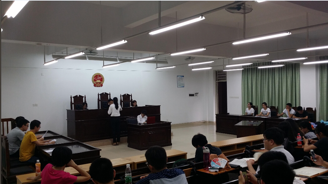 2015年5月25日至29日期间,我院法律学系13级学生在实验楼一A402分别开展了三场《诉讼法》的“模拟法庭”实践课。模拟法庭由《诉讼法》任课老师叶秀主持。《诉讼法》课程教学以“学在课堂、悟在模拟、行在实践”为主旨,开展新型的教育方式改革,理论上引入互动式、模拟式、参与式的教学理念,实践中引入“模拟法庭”方式开展法学教学的改革尝试。通过“模拟法庭”实践,加强同学们对程序法系统的掌握,增强同学们对程序法学习兴趣以及更清晰直观的展现法庭开展的流程。