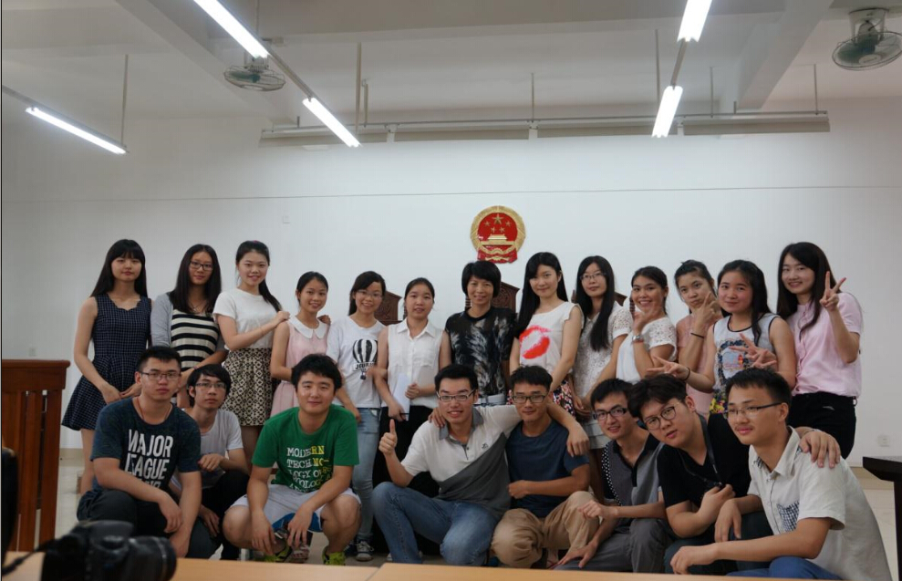 模拟法庭参加人员大合照。(13级法学B班的模拟法庭)