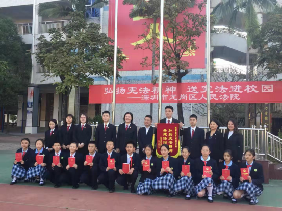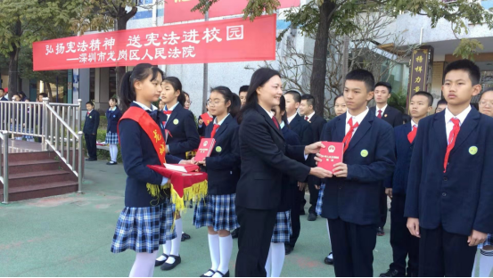 为迎接第六个国家宪法日,12月2日,广东省深圳市龙岗区人民法院少年刑事审判庭庭长简建玲带领其团队和中大新华2016级多名实习生到深圳市龙城初级中学,举办“弘扬宪法精神,共建法治校园”法治宣讲活动。