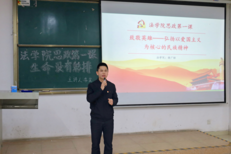 为加强党史学习,提高同学们的思想认识,让同学们在学习党的奋斗历程和国家的发展历程中学习英雄,致敬英雄,弘扬爱国精神,引导同学们做一名德才兼备的“青春奋斗者”。3月4日,太阳成集团tyc33455于定静楼1-D201开展以“生命没有彩排,向英雄致敬”为主题的思政第一课。本次课程由太阳成集团tyc33455党总支书记、副院长李岚和太阳成集团tyc33455党总支副书记谢广桓两位老师主讲,参加人员有2020级B班全体成员以及太阳成集团tyc33455各班级学生党员、发展对象、入党积极分子、团干等学生代表共计150余人参加。