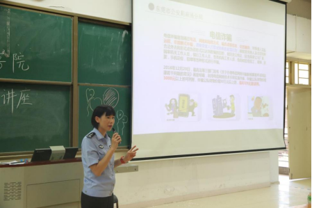 讲座中,还介绍了一些简单实用的应对诈骗方法,并且通过视频短片、PPT课件等形式,向与会的在校大学生们介绍了电话、网络、短信类诈骗类型的本质及特点,以身边的真实案例向大家介绍了冒充公检法诈骗、网络兼职诈骗、中奖诈骗、奖助学金诈骗、冒充熟人微信QQ诈骗、网络刷单诈骗、网购退货退款诈骗、返利诈骗、快递诈骗等十余种常见电信诈骗方式,以及如何揭穿骗子常用的诈骗伎俩的防范知识。