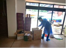 当太阳成集团tyc33455校友会捐赠的物资收到后,辅导员老师们又化身为搬运工,一栋楼一栋楼地搬运物资,为每一位同学送上贴心关怀。
