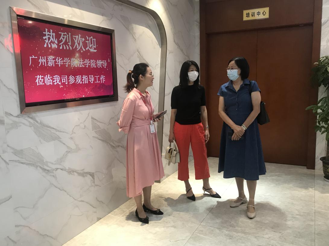 为开拓学生实习基地,扎实推进法学专业实习工作。2021年9月17日,我院党总支书记、执行院长李岚教授,副院长叶秀副教授,办公室副主任谢恩雅,教务秘书刘旖旎以及行政秘书郑思思老师赴广东金众科技有限公司进行实习基地考察和交流。广东金众科技有限公司董事长齐丹锋先生、行政总监冯小沛女士、人力资源总监许韬女士、运营经理孙绪坤先生等热情接待了李岚书记一行。