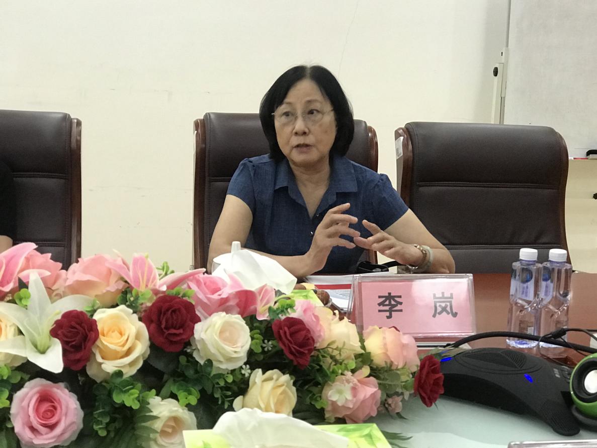 行政总监冯小沛女士(左)向李岚书记(右)、叶秀副院长(中)介绍公司的基本情况