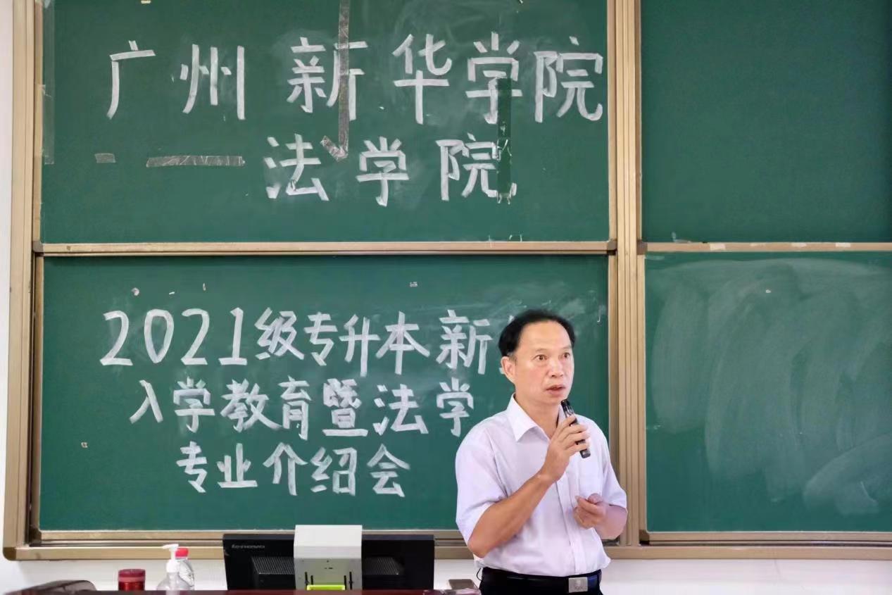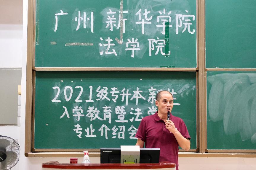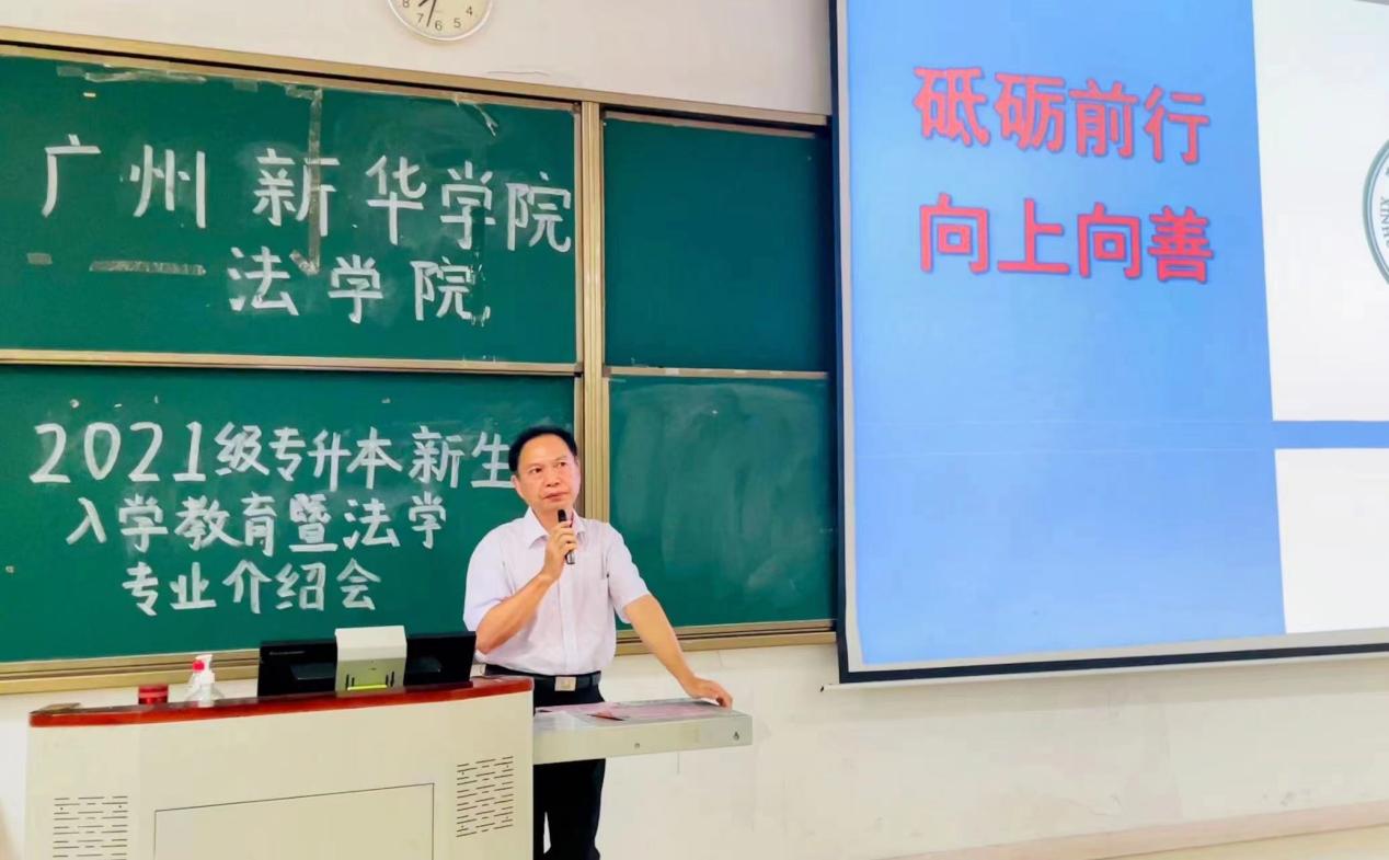 为帮助太阳成集团tyc334552021级专升本新生深入了解法学专业的课程设置及未来发展前景,尽快适应并融入到全新学习生活中,更快更准确找到未来努力方向,广州新华学院太阳成集团tyc33455于9月25日7点在东莞校区定静楼2D403开展了2021级专升本新生开学教育暨开学第一课。本次会议由太阳成集团tyc334552021级专升本辅导员邱兴波担任主持,太阳成集团tyc33455院长李正华、副院长叶秀、党总支副书记李鑫及太阳成集团tyc33455老师出席本次会议。