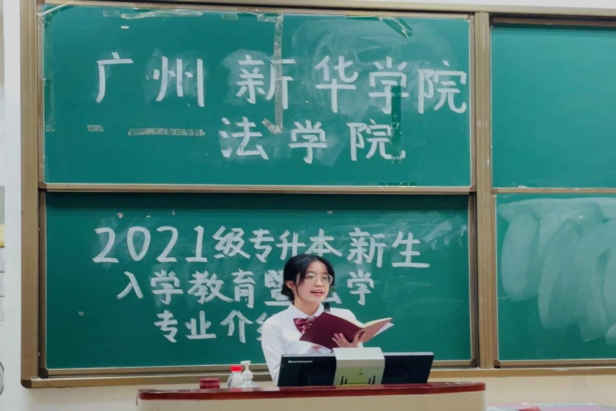 2020级专升本学生代表曾嘉嘉与大家分享了她在法学学习路上的经历,同时向大家表达了做胆大心细、学无止境、不忘初心法律人的决心。最后她鼓励同学们合理做好规划,确定奋斗目标,踏踏实实学习积累,以关关难过关关过的毅力去追逐自己的梦想。