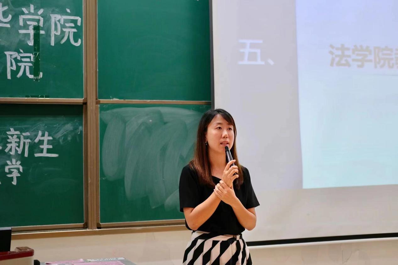 叶秀副院长详细地为同学们介绍了法学这门专业,并为同学们解答了学校师资、人才培养方案及专业就业情况相关问题。叶秀副院长在会上强调我校法学教育培养以“应用型、实用性、多才干”为人才目标,培养学生“能言、善辩、硬笔头”的能力,以学生“成人、成才和就业”为基本目标。她希望同学们在未来法学学习生活中能够学有所成、学有所获,度过值得骄傲的大学生活。