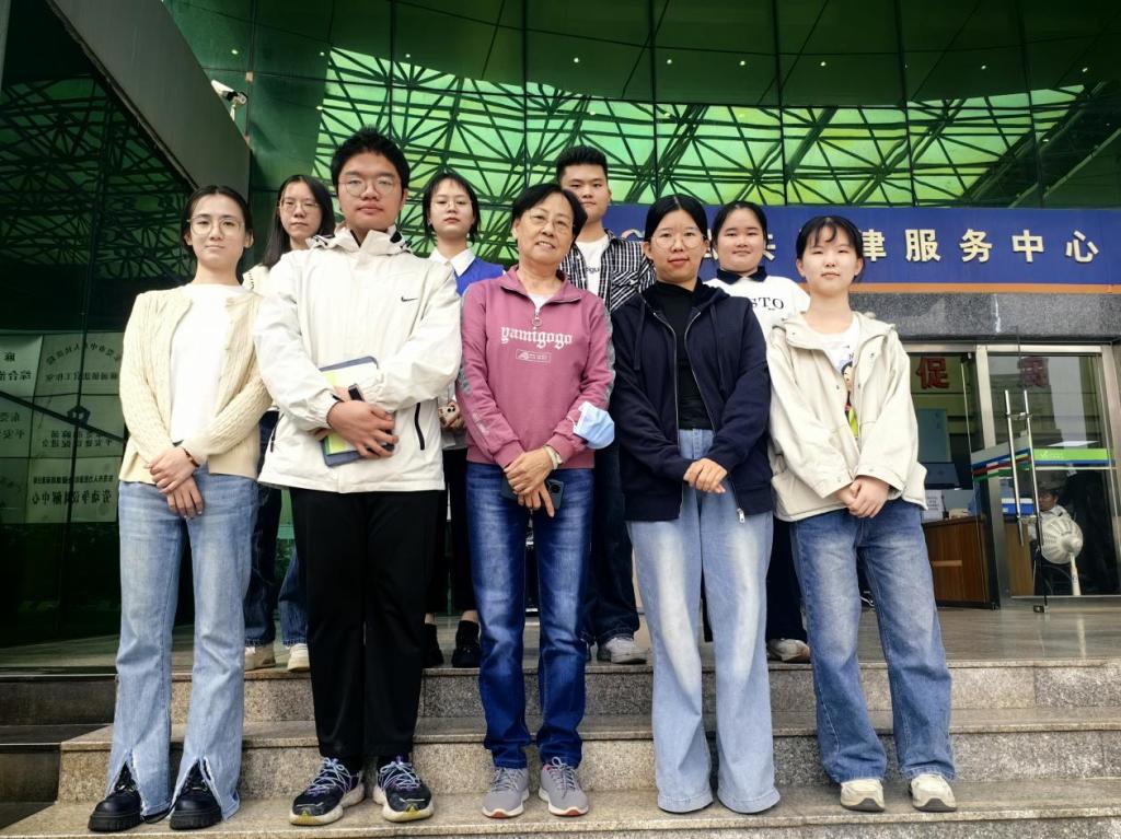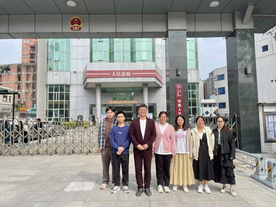 图3:郭艳东老师带队走访东莞市第二人民法院厚街法庭与实习生的合影