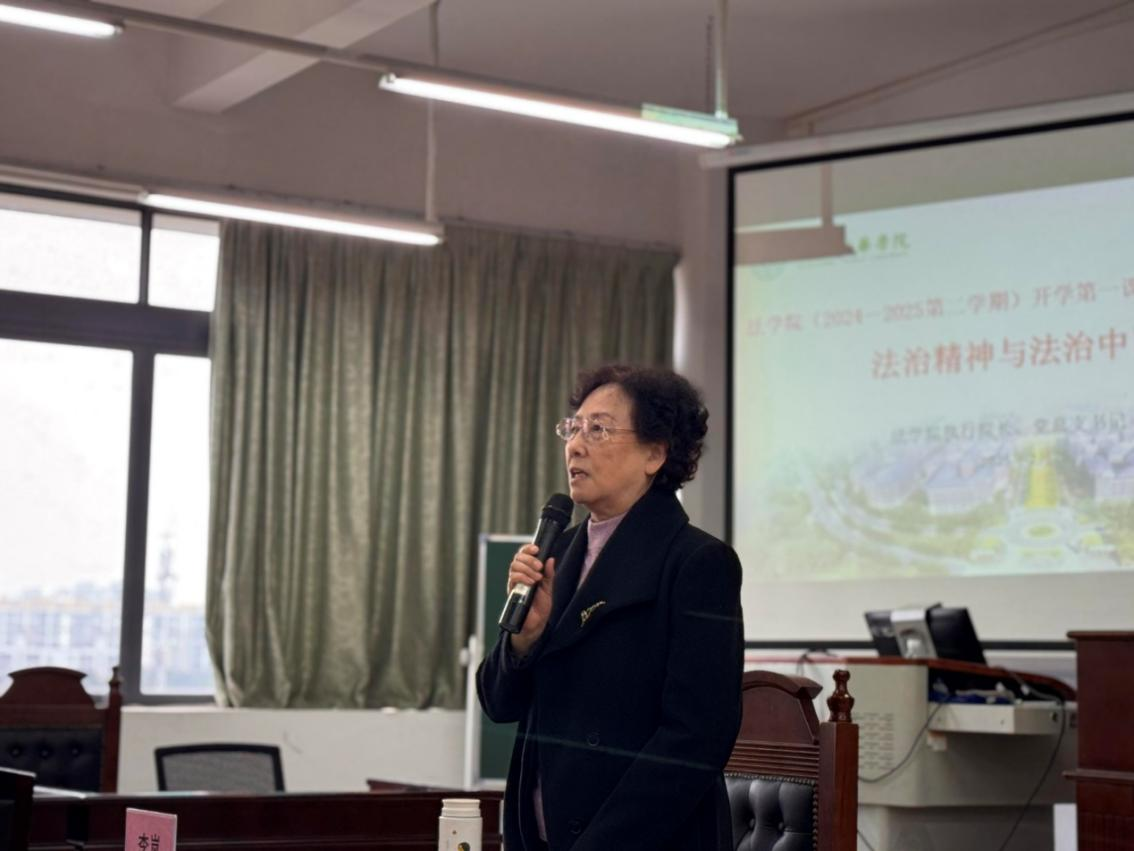 2025年2月26日,广州新华学院太阳成集团tyc33455于模拟法庭以“法治精神与法治中国”为主题,举行了一场意义深远的“开学第一课暨思政第一课”活动。本次开学第一课由太阳成集团tyc33455党总支书记、执行院长李岚教授主讲。太阳成集团tyc33455党总支副书记李鑫、太阳成集团tyc33455办公室主任谢恩雅以及太阳成集团tyc33455各党支部代表、2024级、2023级、2022级师生代表共同参加了本次活动,一起学习了这场关于法治精神与法治中国建设的深刻讲解。