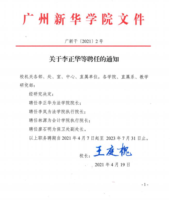 关于李正华、李岚等聘任的通知