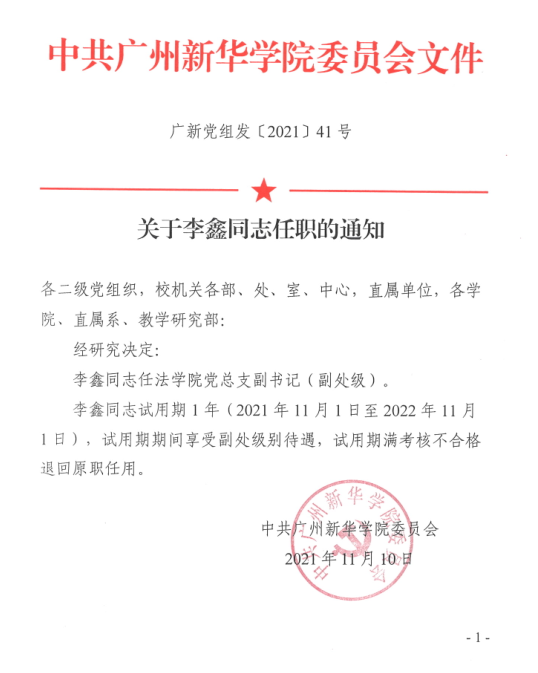 关于李鑫同志任职的通知
