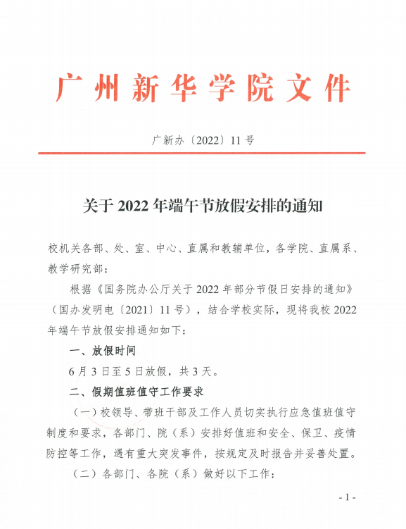关于2022年端午节放假安排的通知