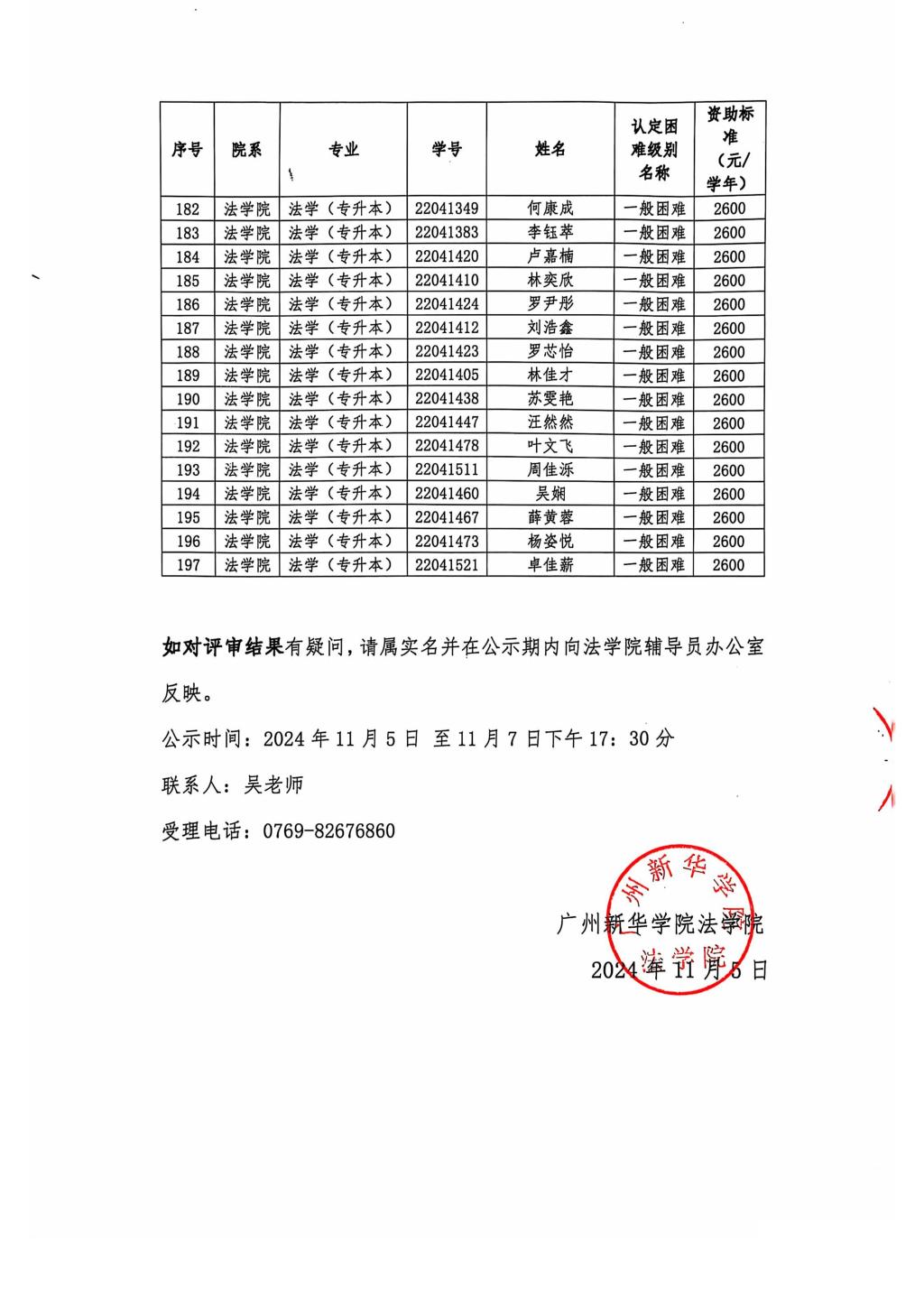 广州新华学院太阳成集团tyc334552024-2025学年国家助学金受助学生名单初评公示