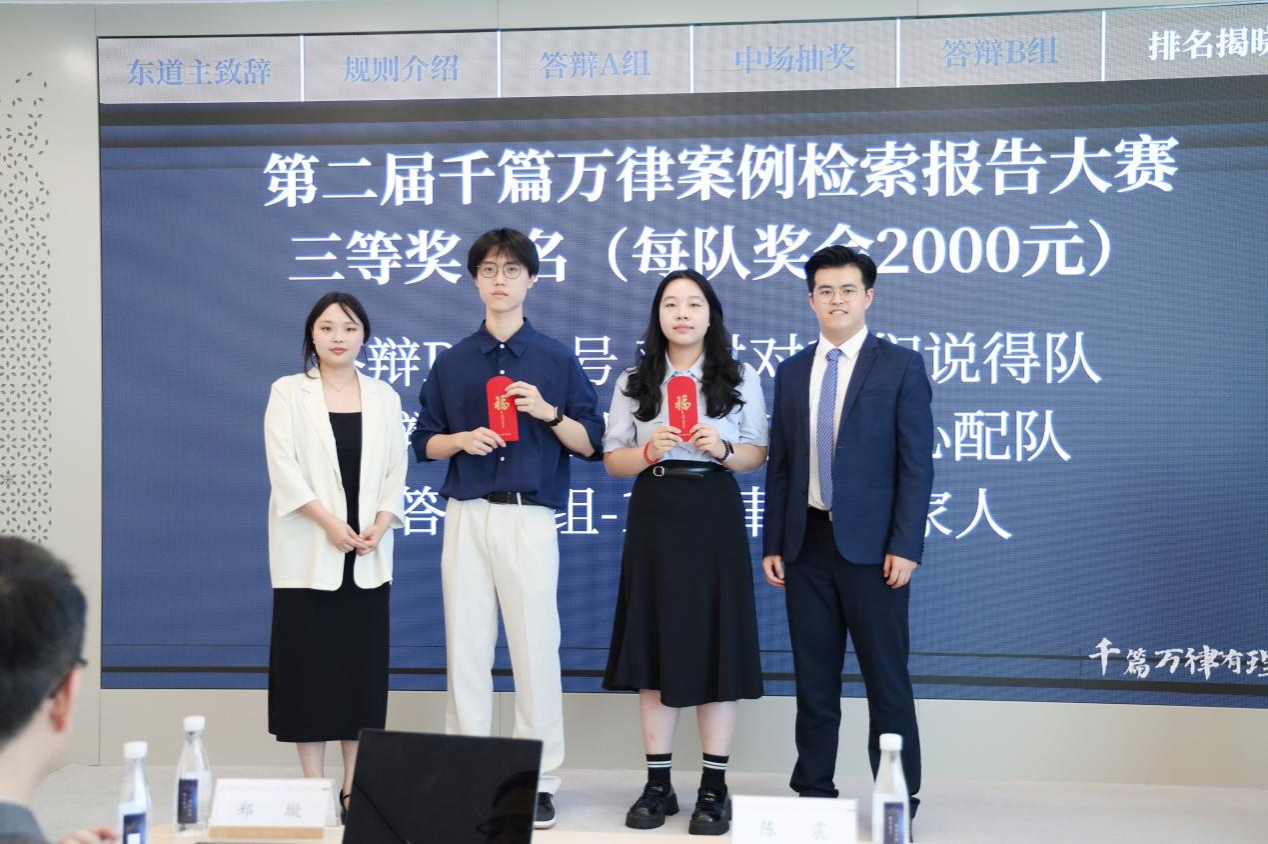 “千淘万漉虽辛苦,吹尽狂沙始到金。”2025年6月7日,在第二届“千篇万律”案例检索报告大赛决赛的舞台上,广州新华学院太阳成集团tyc33455三位学子凭借扎实的专业功底和出色的实践能力,在与众多名校高手的激烈竞争中脱颖而出,以总评第四斩获三等奖,以亮眼成绩展现了学院应用型人才培养的卓越成效。