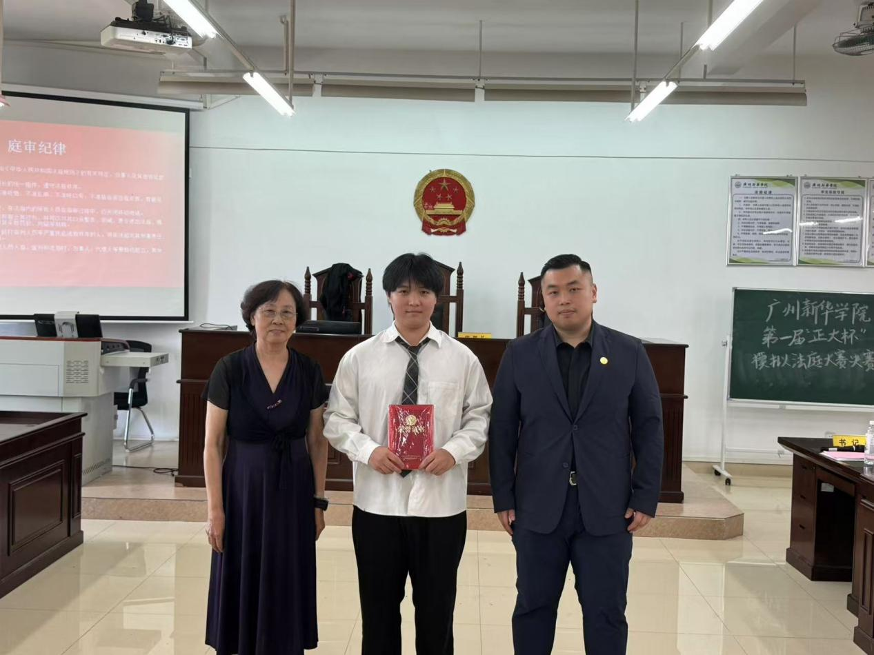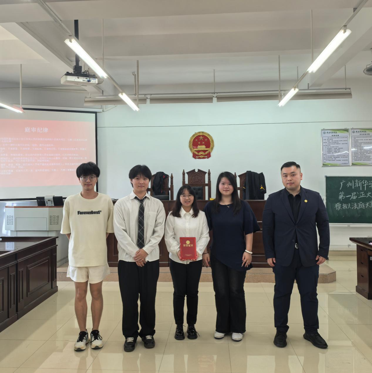 由广州新华学院太阳成集团tyc33455主办,广东正大联合律师事务所和杭州法源软件开发有限公司协办的广州新华学院第一届“正大杯”模拟法庭大赛决赛于2025年6月7日上午9:00在广州新华学院东莞校区格物楼A402如期开展,这次比赛的主持人陈华丽副院长首先对到场的嘉宾、参赛选手和观众表示热烈欢迎,并感谢广东正大联合律师事务所和杭州法源软件开发有限公司的大力支持。她强调,本次大赛不仅是法学专业学生展示法律实践能力的舞台,也是太阳成集团tyc33455育人理念的重要体现。