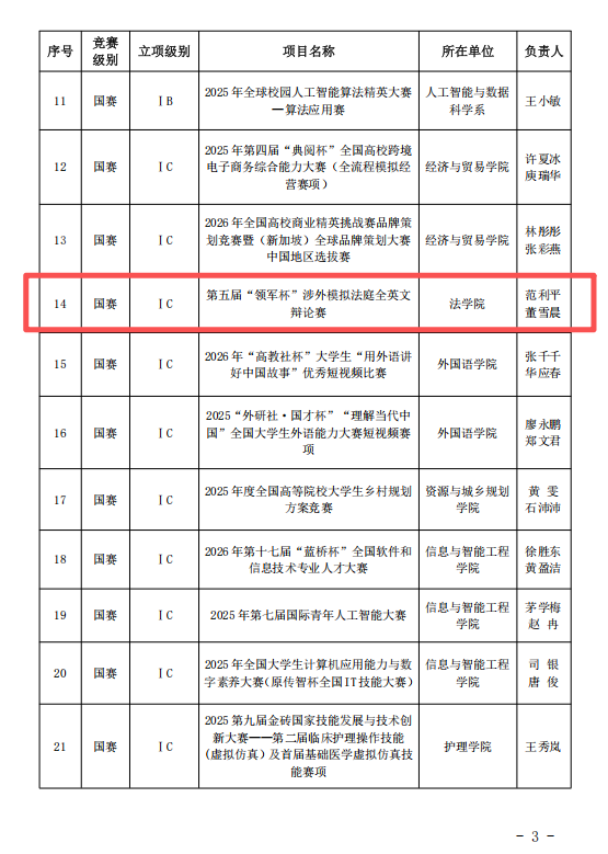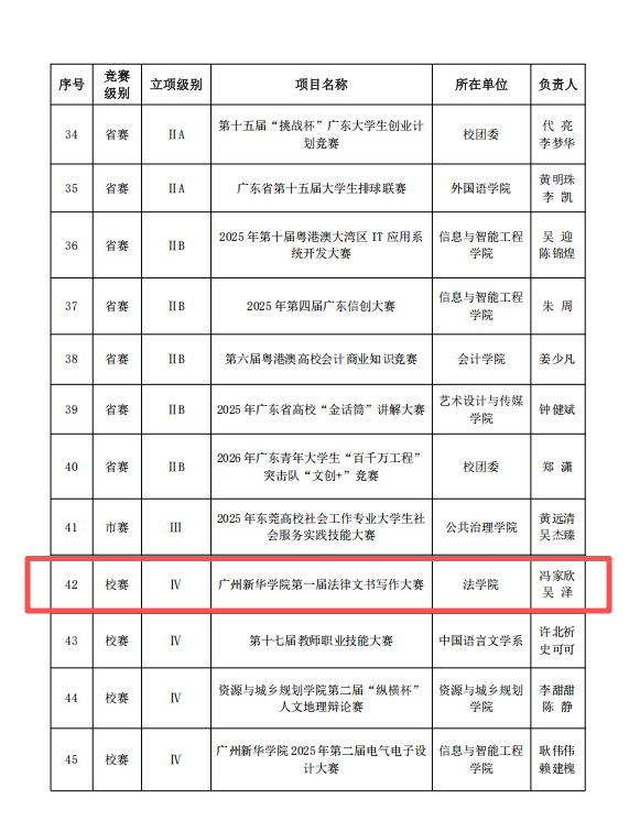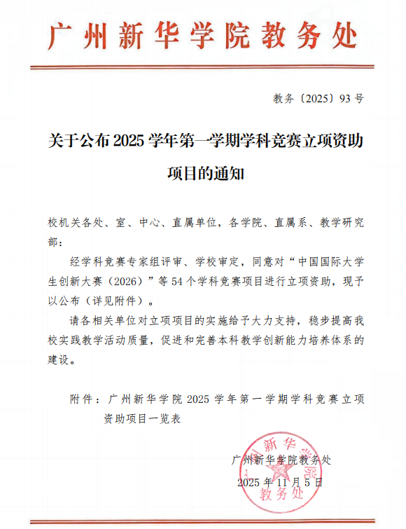 关于公布2025学年第一学期学科竞赛立项资助项目的通知