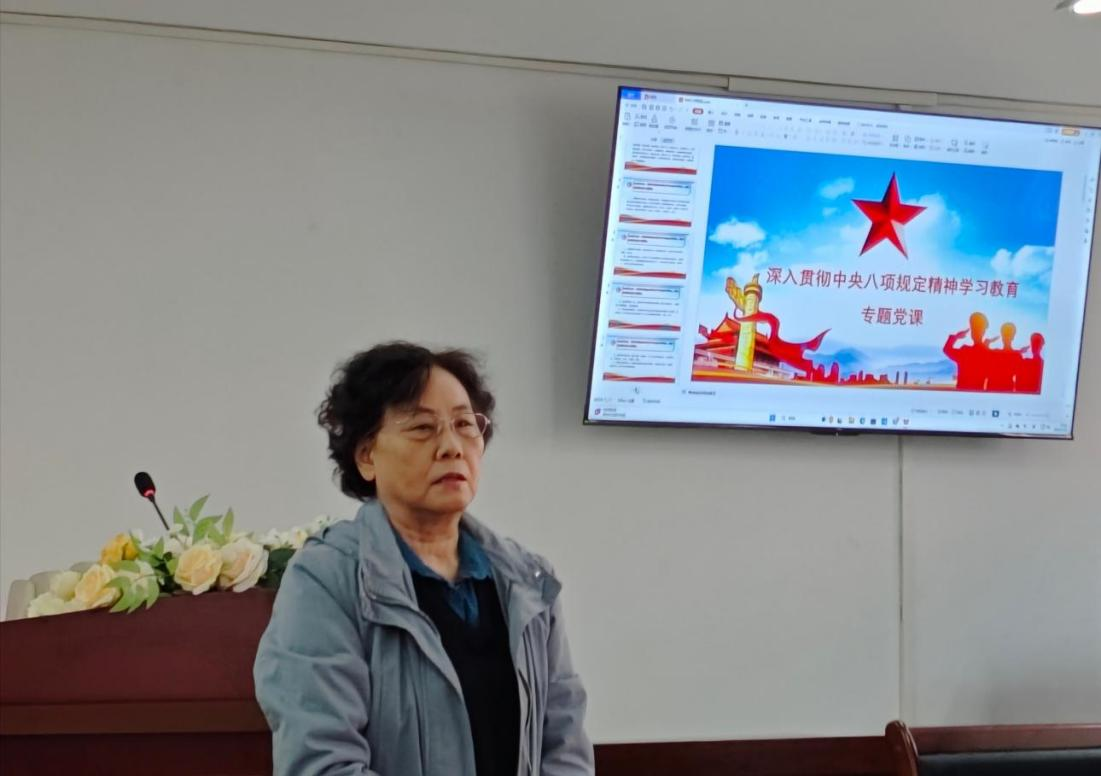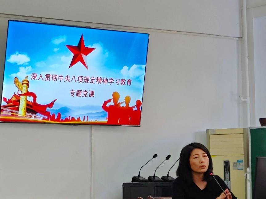 党课伊始,叶秀书记首先传达了党中央的会议精神,明确指出中央八项规定是推进全面从严治党的重要抓手,要求全体党员以永远在路上的清醒持续深化作风建设。叶秀书记逐条解读八项规定具体内容,重点阐释了改进调查研究需深入基层、精简会议活动要注重实效、厉行勤俭节约重在制度执行等核心要求,强调每项规定都是党员干部必须严守的行为准则。