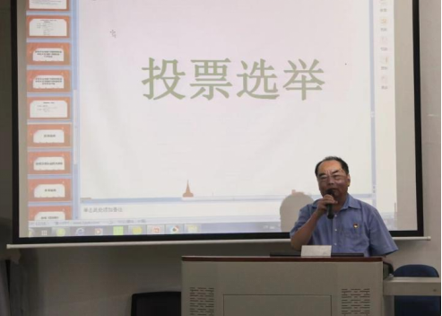 大会第三项议程推选彭江炜同志为监票人,刘海亮和黄益汉同志为计票人。