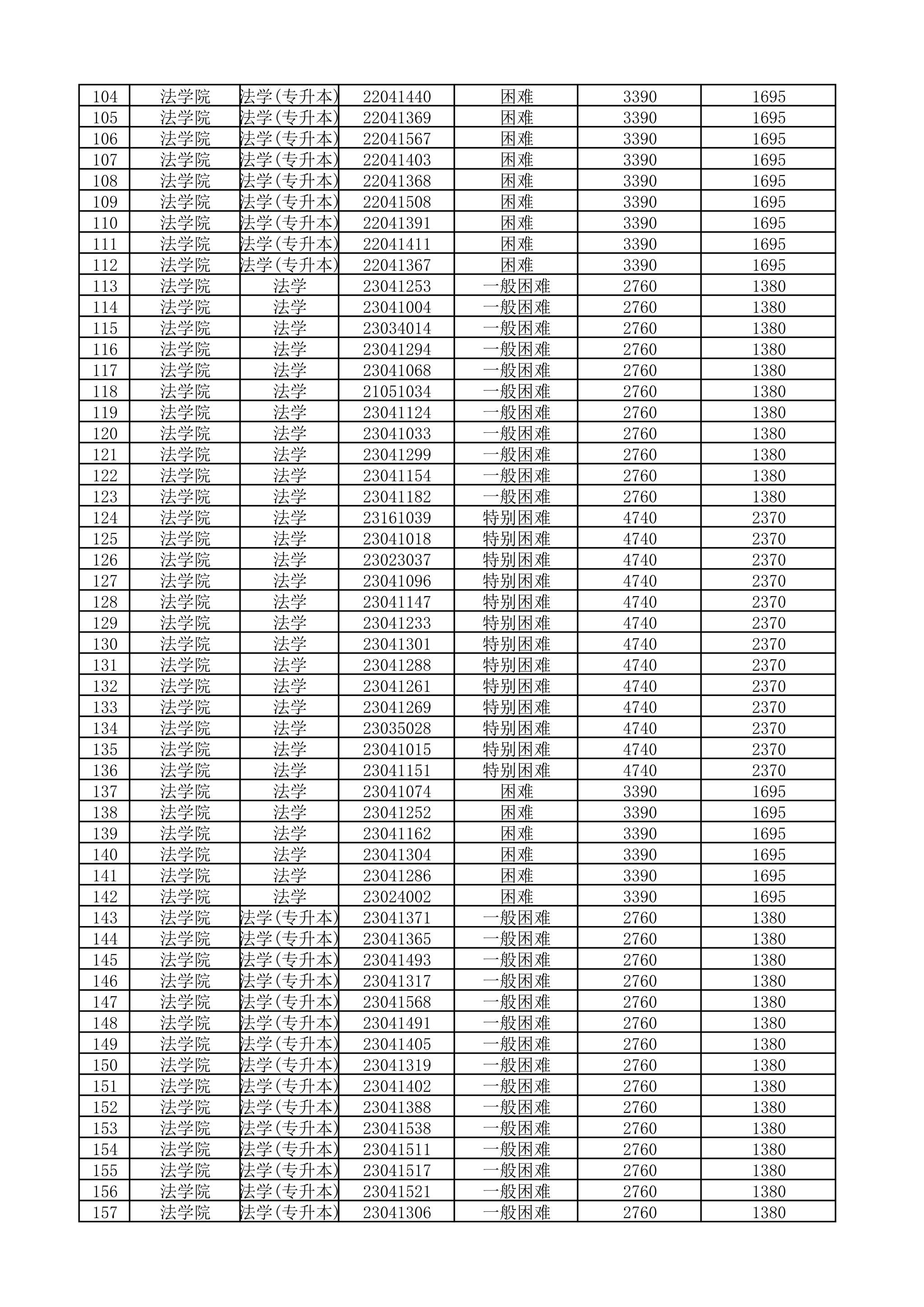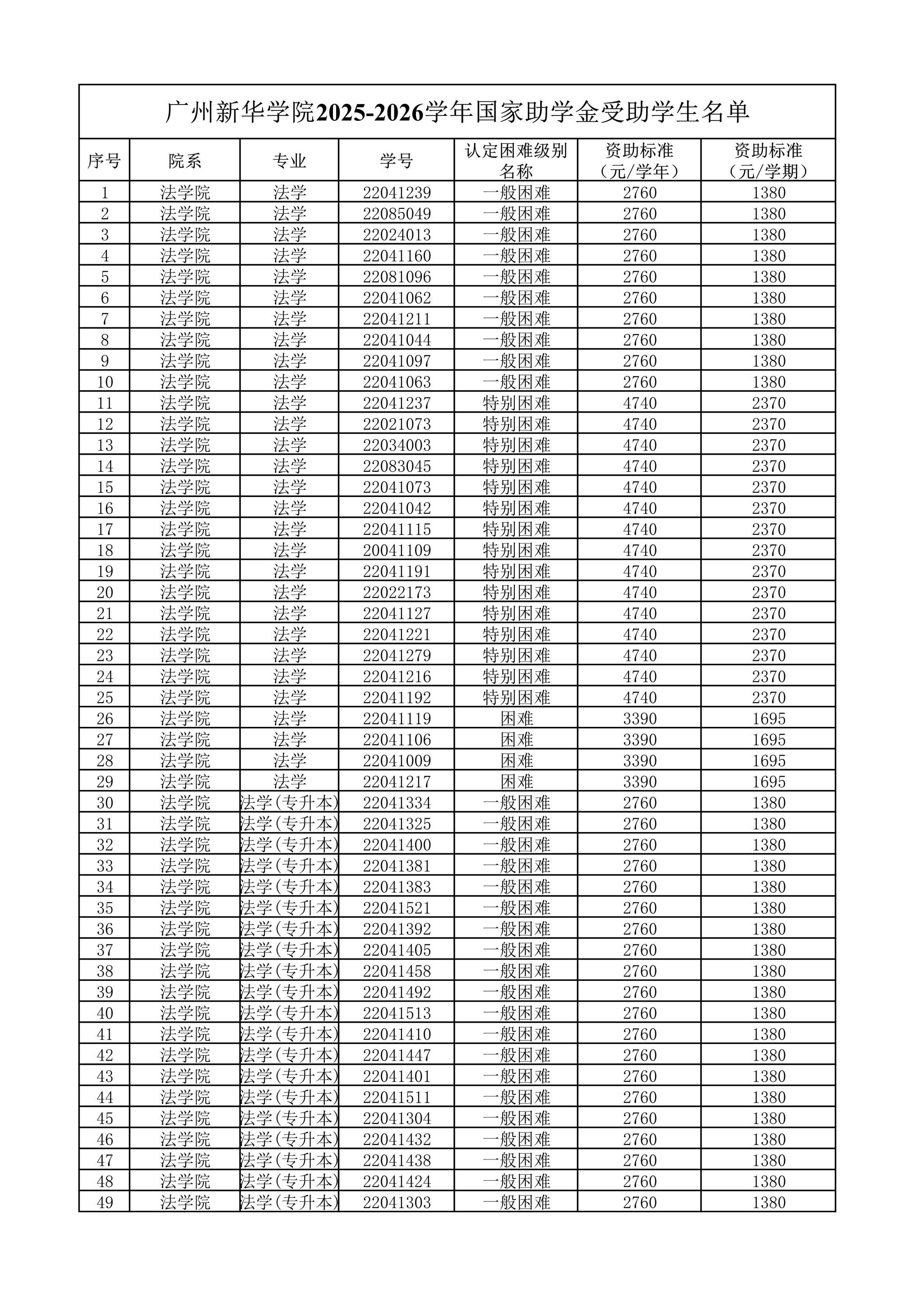 太阳成集团tyc334552025-2026学年国家助学金受助学生名单