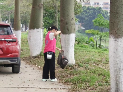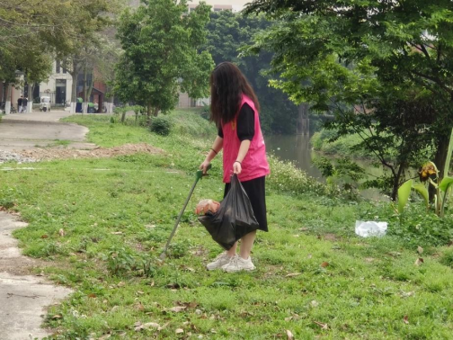 为了让校园更加整洁和宜居,穿着粉红色马甲的志愿者穿梭在校道边,河堤旁,单车间,他们付诸努力,让校园的春色更加美好与洁净,让我们的校园焕发出勃勃生机。