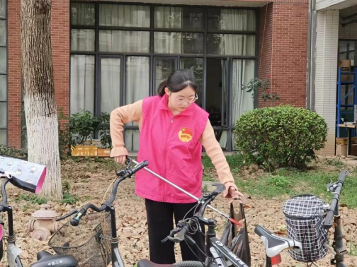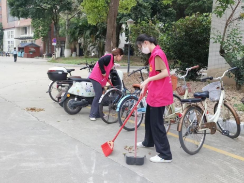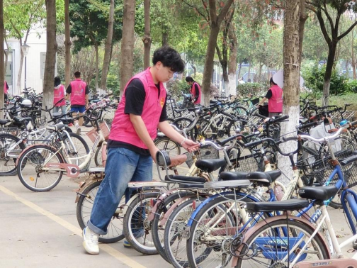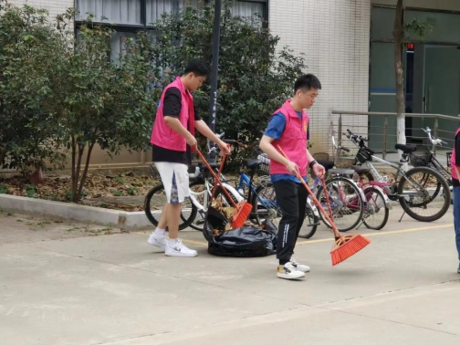 暖阳斜照,微风正好。单车停放处的志愿者也正挥舞着手中鲜红的扫帚,将单车与单车的缝隙间的枯枝落叶扫入垃圾铲里。用自己的勤劳能干为校园的和谐美丽贡献力量,为校园褪去冬衣重焕生机。