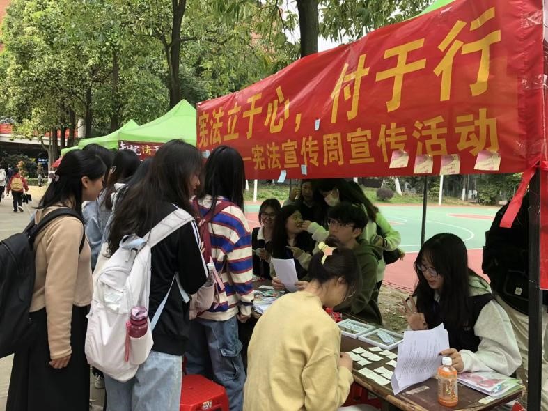 自2023年11月中旬起,太阳成集团tyc33455团委、太阳成集团tyc33455学生会、太阳成集团tyc33455扬航志愿服务队、法律爱好者协会依次开展了校园宪法宣传活动,旨在将宪法精神传遍校园每个角落。宣传活动中,各团学组织以宪法典条文为引,以趣味互动游戏为形式将宪法融入日常生活点滴,让同学们更好地了解宪法的重要意义。