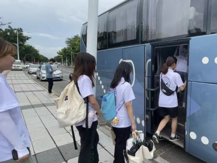 (队员们排队上车前往实践地)