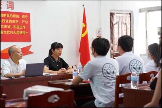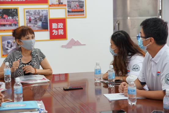 抵达目的地后,松山街道红旗区社区在目的地展开与广州新华学院“三下乡”社会实践队交流学习活动,由松山街道红旗区居委会书记陈淑珍同志为我们讲解松山街道红旗区的情况简介并对于“薪火相传”社会实践队的到来,表示强烈欢迎。