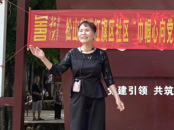 黄腊梅,64岁,喜歌善舞,工作态度积极,乐于奉献。退休前曾在韶钢集团参加工作,退休后在松山街道红旗区社区任“红旗红”合唱团副团长、“钢之魂”党群先锋队第二组组长。