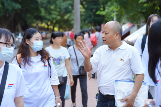 (管利源同志在路上与带队老师进行交谈)