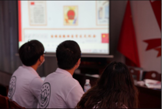 (“薪火相传”社会实践队队员们正在观看PPT)