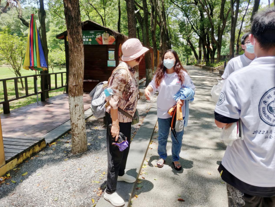 (带队老师和队员在与路人进行交流介绍)