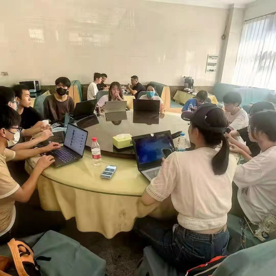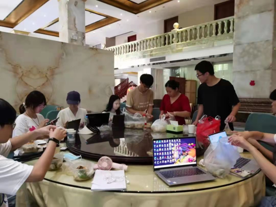 晴云轻漾,熏风无浪。为避免疫情传染事件发生,我队核酸检测完毕之后,即刻返回居住的民宿。我队返回到民宿后,针对今天行程问题召开会议。大家在会议上,对于今日的活动行程安排踊跃提出建议,商量如何修改行程安排。会议结束后,我队便在大厅展开工作,废寝忘食直至下午三点。