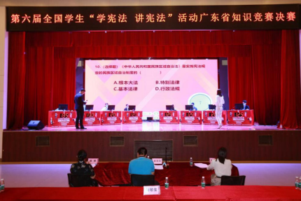 2021年10月15日,我校学子在广东省教育厅举办的第六届“学宪法,讲宪法”宪法知识竞赛中斩获二等奖的好成绩。这是广州新华学院首次出现在广东省宪法知识竞赛的决赛现场,这也是广州新华学院对学生的宪法宣传和宪法教育走上新台阶最好的证明。