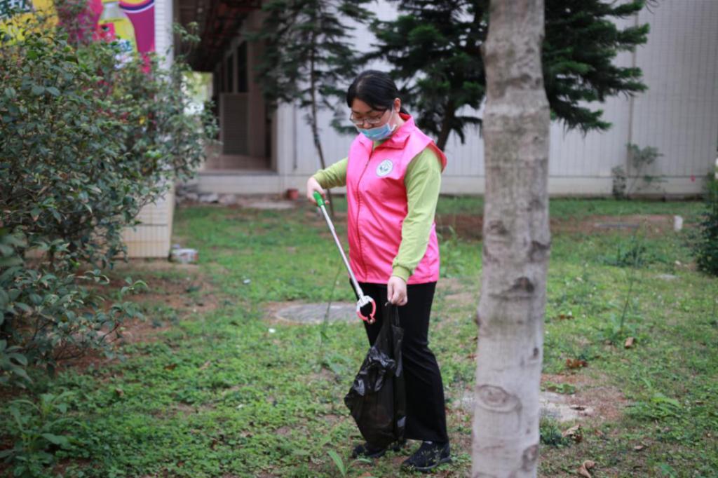 (志愿者在清扫校园)