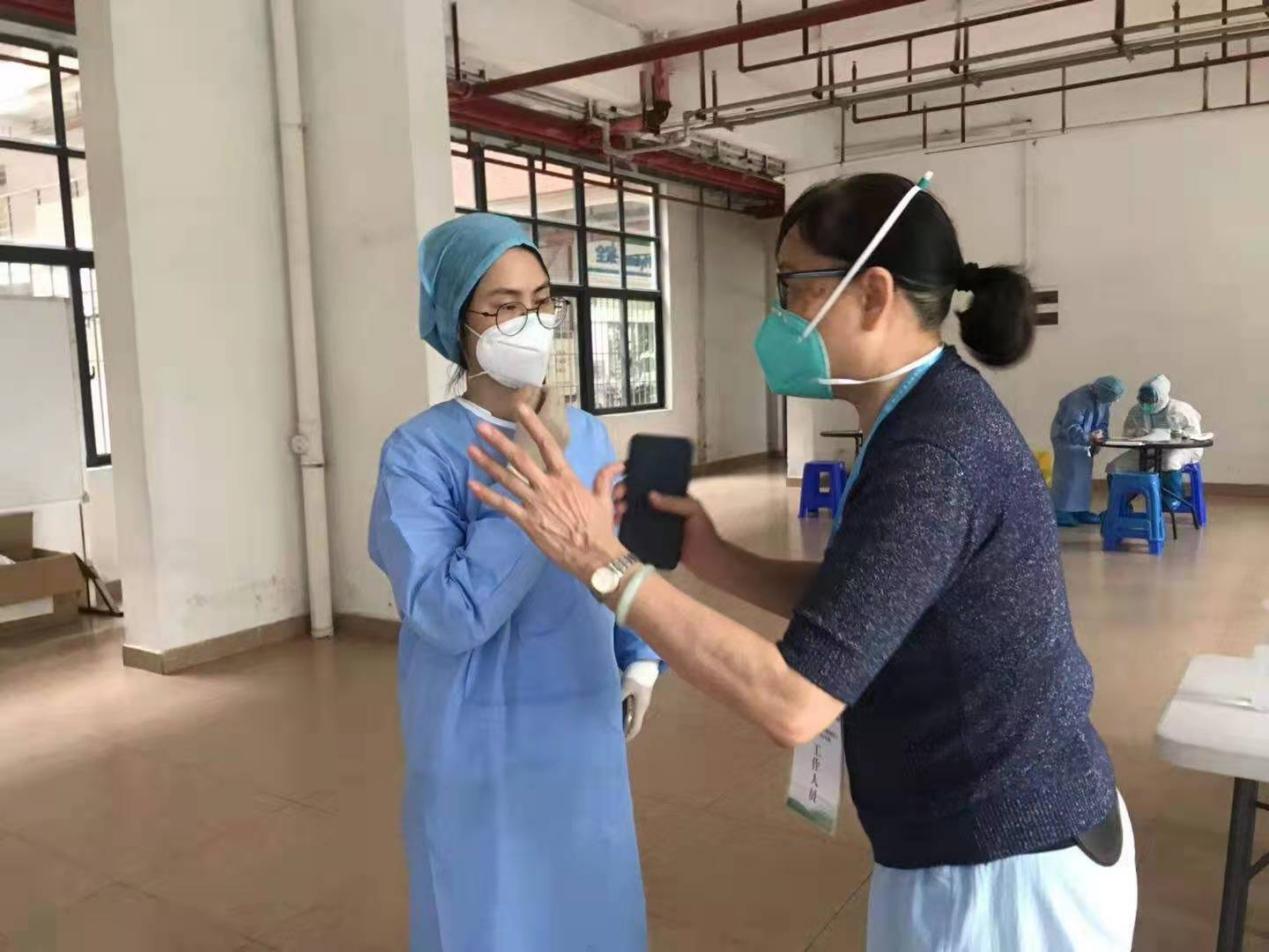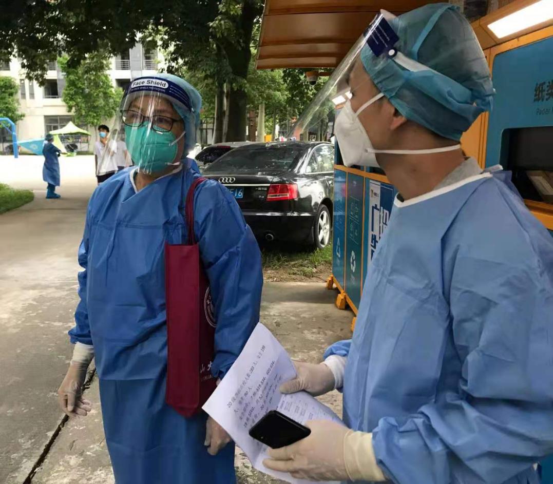 (李岚院长在维持核酸检测现场秩序)