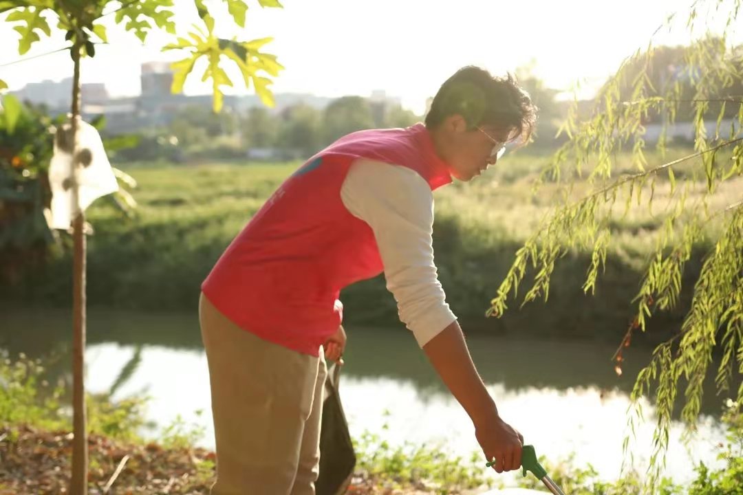 (志愿者在清扫河堤)