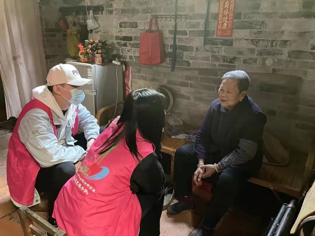 随着社会老龄化程度的不断加深,空巢老人也越来越多,已经成为了一个不容忽视的社会问题。而对于老年人来说,最可怕的或许并非老去,而是孤独。针对这一问题,扬航对华阳村老年人开展了“夕阳红”活动,希望能够通过陪伴给老人们带去一份心灵上的慰藉。活动开展期间,志愿者每周都会去探访老人,陪老人聊聊天,帮他们量血压,并提醒老人家按时服用降压药。在探访中,扬航不单局限于简单的慰问与聊天,还采用红歌会、玩小游戏等形式增强与老人家的互动,并通过小品表演来帮助他们了解防诈骗知识,丰富了老人们的精神生活,也给他们送去一份温暖。