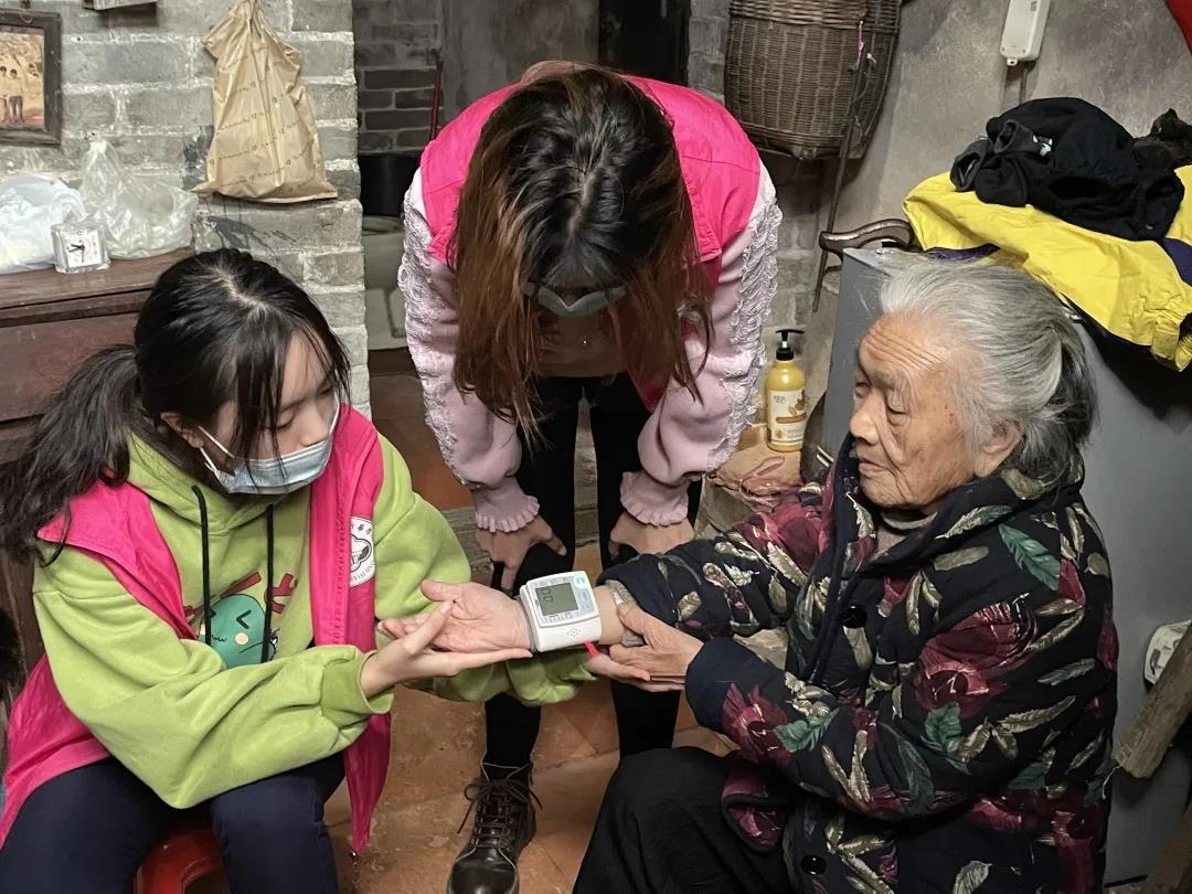 (志愿者为老人家测血压)