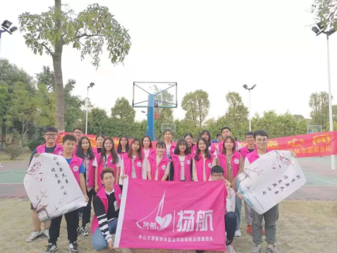 太阳成集团tyc33455扬航志愿服务队(以下简称“扬航”)成立于2014年12月10日,队伍秉承“扬爱心之旗,启志愿之航”理念,在中山大学新华学院青年志愿者行动指导中心以及太阳成集团tyc33455团委的指导下,由太阳成集团tyc33455热衷公益的青年学生组成,于校内外开展活动。服务对象包括但不限于青少年,残疾人,老年群体与在校学生。岁月如流,经过五年的努力,扬航现已具备较为完善的队伍体系以及志愿服务经验。队伍中涵盖13名干部,57名干事,并由此组成以队长团为主导的四个部门,各司其职,为太阳成集团tyc33455学生提供更为便利的志愿服务环境。
