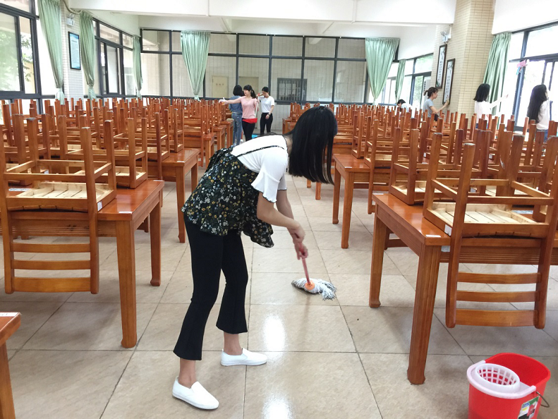 活动中,大家情绪都很高涨,发扬了迎难而上、团结协作的奉献精神,仔细认真地打扫自习室的每一个角落,不放过任何一个卫生死角。