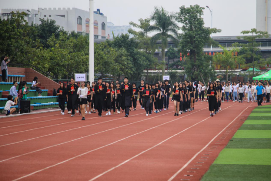 开幕式正式开始后,各系代表队迈着整齐有力的步伐在主席台前展现各自的风采。我系学生代表伴随进行曲入场接受检阅,沿用了往年全服黑装的习惯,响亮的“雄姿英发,法学风华。巍巍学府,耀我新华。”口号响彻云霄,很好地传达了法律人固有的庄严肃穆的风貌。