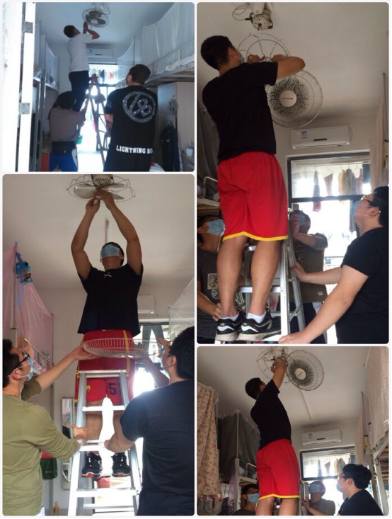 班委们的此次行动正是考虑到女生的能力有限,宿舍的电器内部难以清洗,随着时间的推移,灰尘和污迹越积越多,可能从入学至今也没能洗上一次。所以,班委们不仅对空调、风扇、饮水机、洗衣机等电器进行拆卸、清洗,还对女生们平时宿舍卫生中的死角和够不着清洁的地方进行了打扫。经过班委与班里男生们两个多小时的辛勤劳动,女生宿舍的风扇、空调、饮水机变得焕然一新,整个宿舍也显得更加整洁和干净。女生们对我们“宿舍美容师”的清洁行动都赞不绝口。