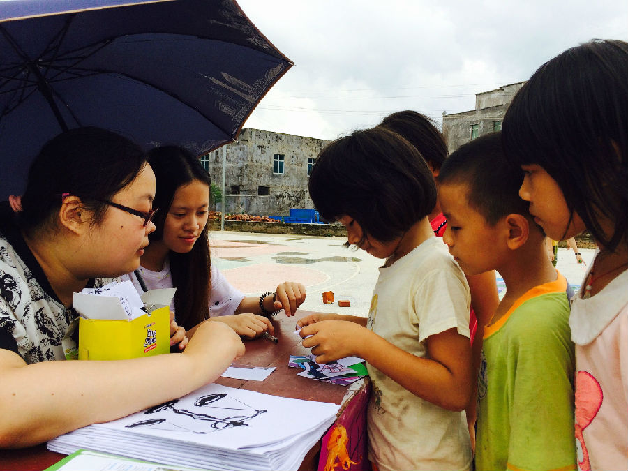 像很多农村一样,红榄村的青年大都走向全国各地,为着梦想和生活而不停的奔波,留守乡村的只剩下老人和未成年。法制游园活动以创新、新颖的形式将法律融入到游戏当中,让村民既能感受游戏带来的快乐,也能了解贴近他们生活的法律知识,虽然天空飘散着小雨,但村民们爽朗的笑是对我们工作的最大努力。活动结束后,我们给村民们派发了小礼物,以感谢他们的支持与热情,可让我们始料未及和感动的是一位阿姨为我们的工作人员撑着雨伞,说要赠与我们当地的特产橘红。我们能感受到红榄村村民的热情,能感受到村民对我们即将结束调研工作的不舍,虽然离别总是难免的,但在普法工作中所结下的友谊是不会因离别而走向结束的。送法千万家,系情你我他。