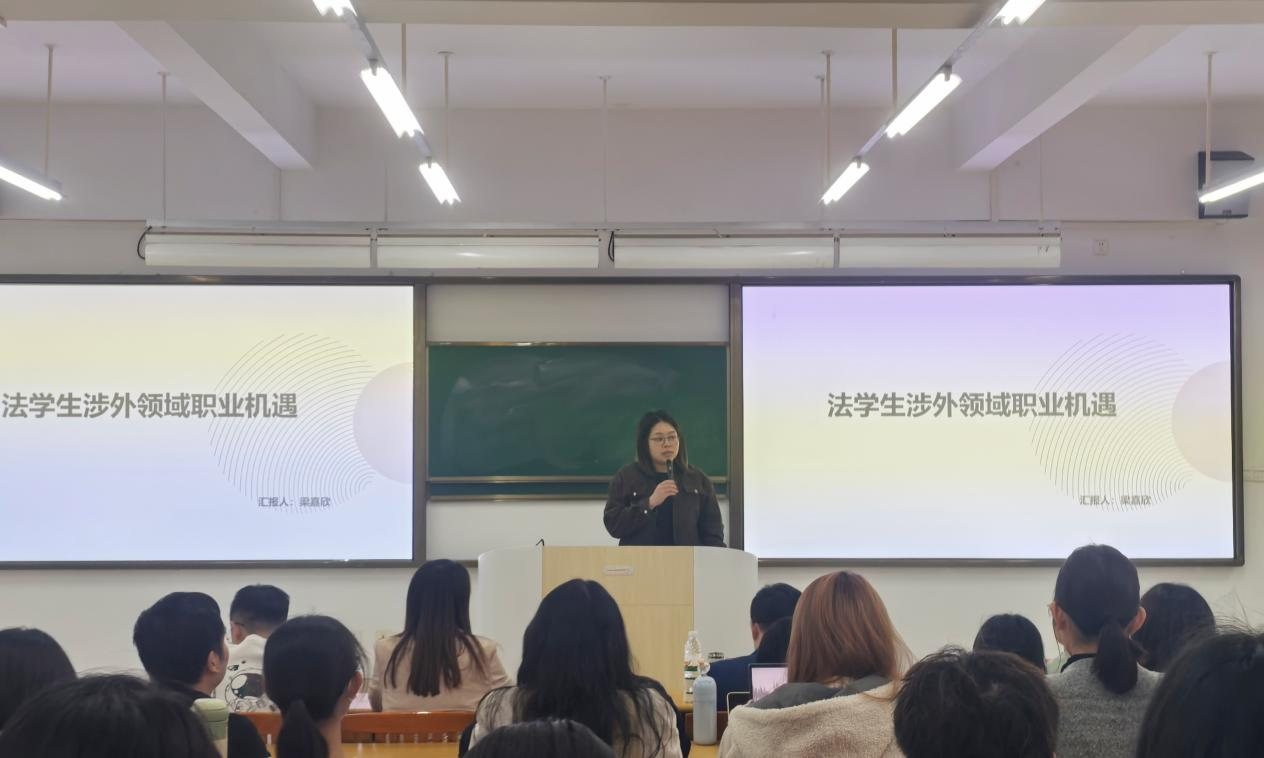 梁嘉欣围绕法学生涉外领域的职业机遇展开分享,为面向涉外法律发展的同学指明了方向。她推荐同学们可以向国际贸易法律咨询、国际争端的解决以及合规师的方向发展。通过法考后,还可以考取香港律师资格证或加利福利亚律师资格证,向国际律师的方向发展。梁嘉欣还强调了外语能力和国际视野的重要性,她建议同学们加强外语学习,紧跟国际政治经济动态,抓住未来机遇。