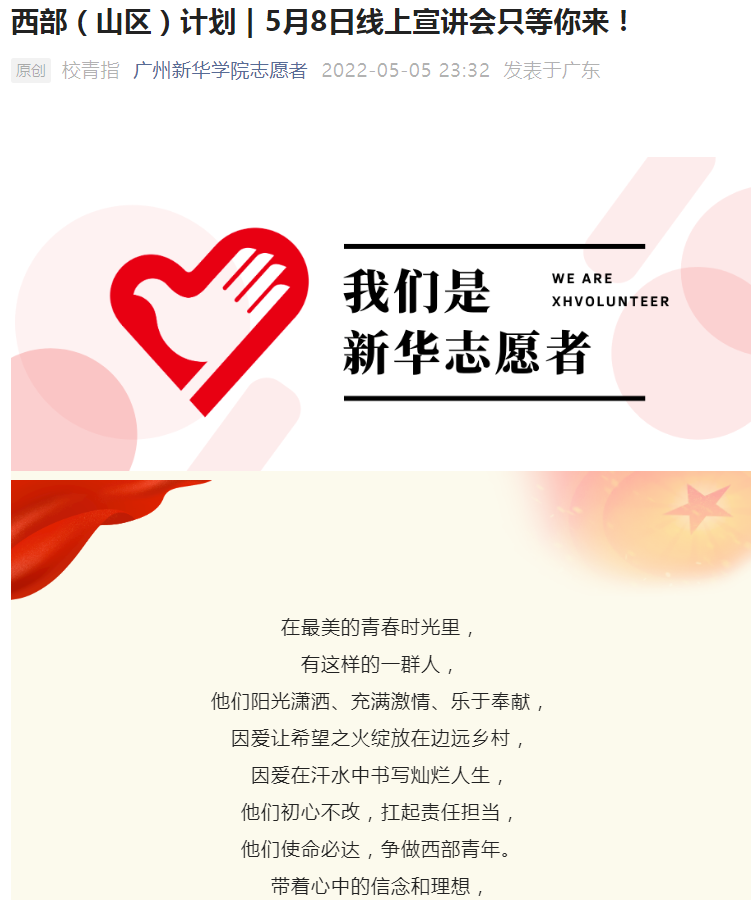 招聘信息-西部(山区)计划 | 5月8日线上宣讲会只等你来!