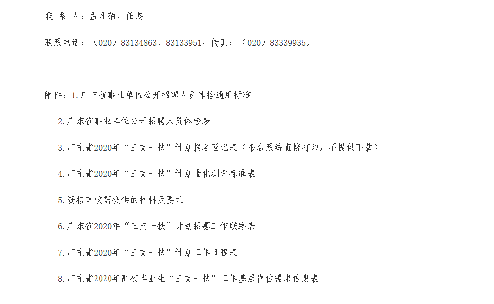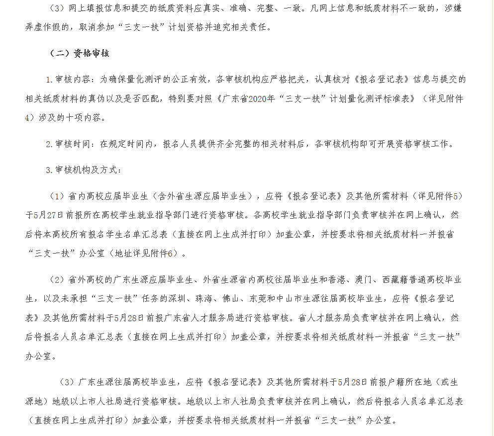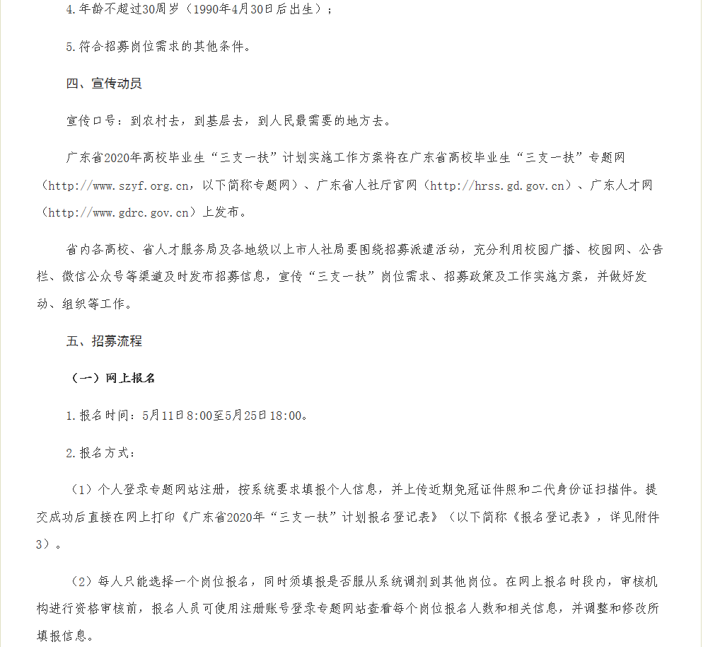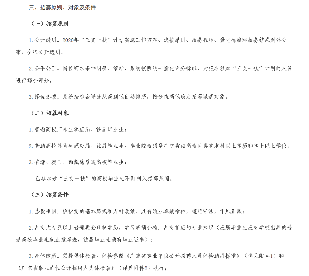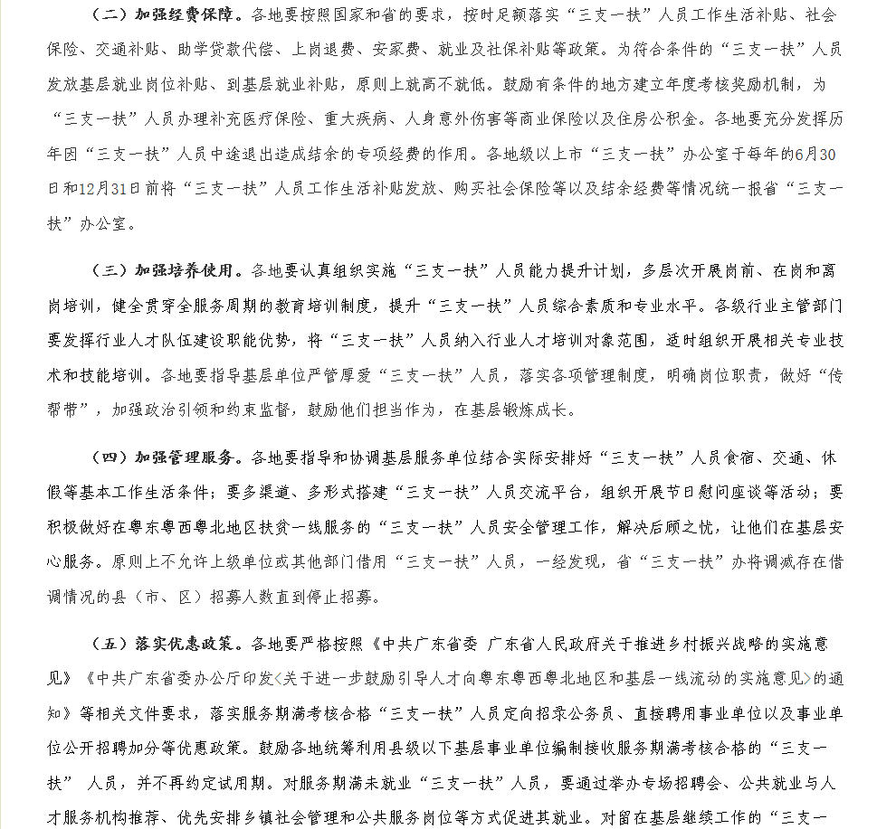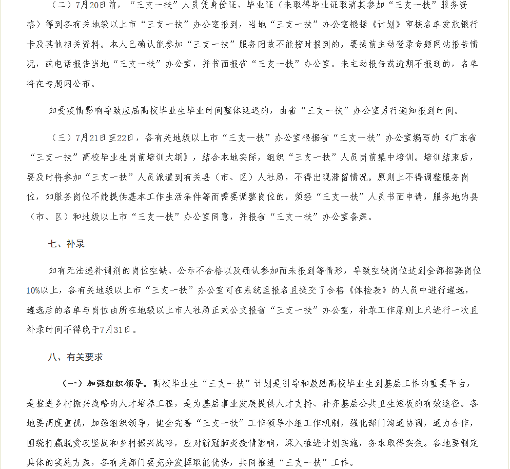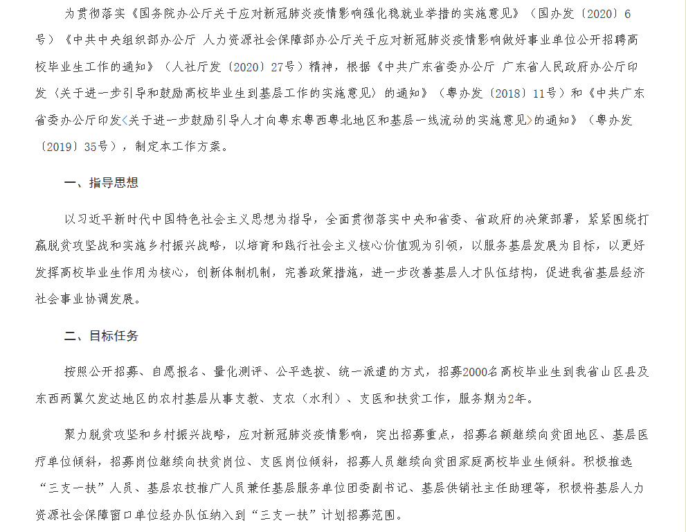 广东省2020年高校毕业生“三支一扶”计划实施工作方案