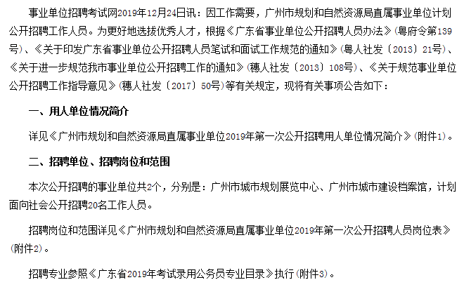 招聘信息-广州市规划和自然资源局直属事业单位第一次招聘事业编制人员公告