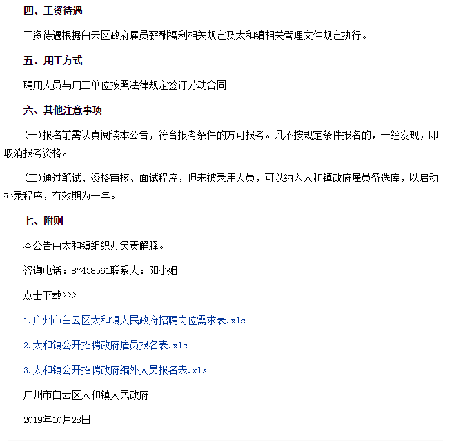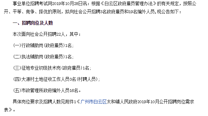 招聘信息-广州市白云区太和镇人民政府招聘公告