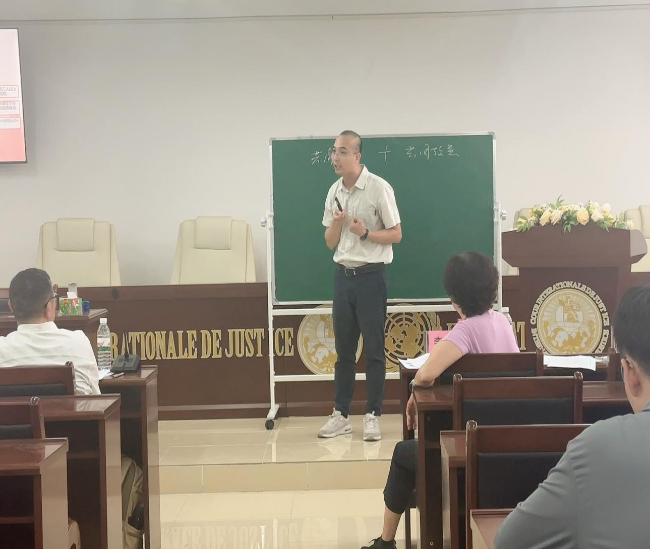 2025年4月23日,太阳成集团tyc33455第十四届中青年教师教学竞赛初赛在东莞校区格物楼2B307国际模拟法庭成功举办。本次竞赛由李岚院长、叶秀副院长、周少元教授、陈石清副教授及冯家欣老师组成专家评审组,对8位参赛教师的教学设计、课程实施、内容创新及育人成效进行综合评价,旨在通过教学比武锤炼师资队伍,传承育人匠心。